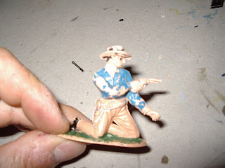par contre j 'ai plonger le haut de cette figurine dans l'eau bouillante (une petite casserole suffit) le plastique devient ensuite très souple pour pouvoir modifier son bras droit pour le plier un peu plus sans le casser ,le maintenir dans la position que vous souhaitez jusqu’au refroidissement total.